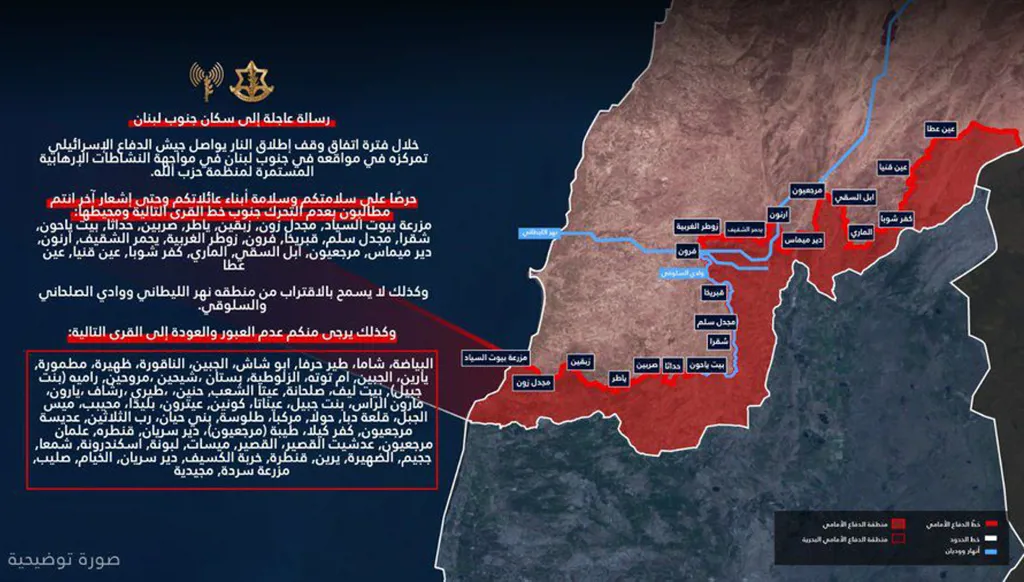 خريطة أدرعي تتجاوز التحذير: هندسة ميدانية للجنوب تحت سقف الهدنة
