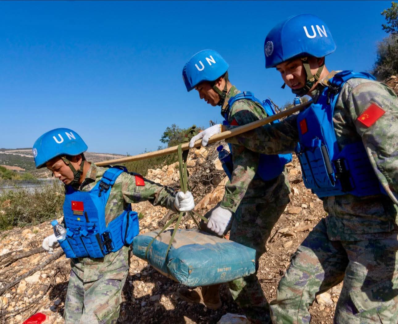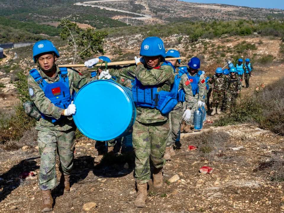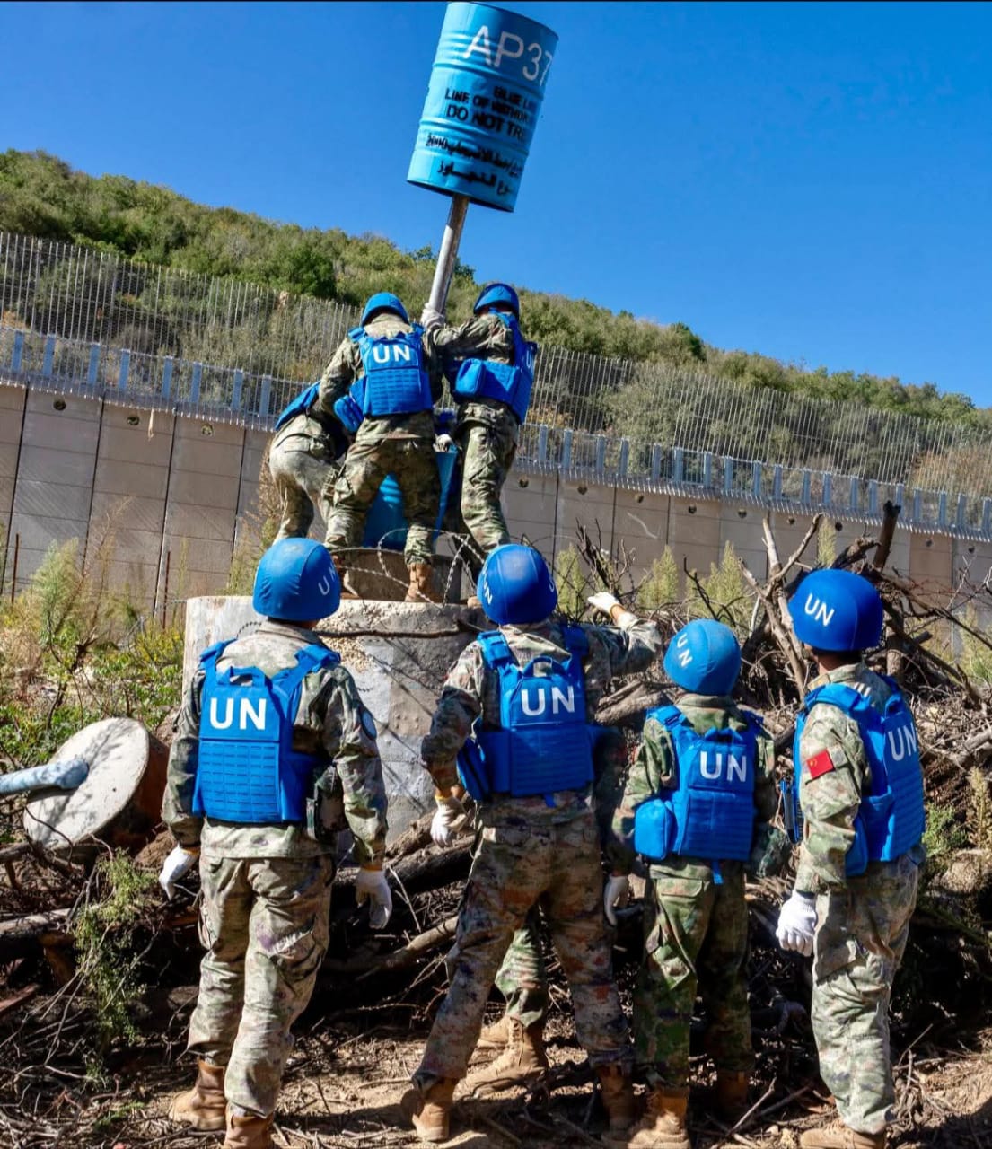 في 22 تشرين الأول، في جنوب شرقي بلدة رميش، أحضر حفظة السلام الصينيون برميلاً أزرقاً جديداً ومواد بناء – بما في ذلك الأسمنت والرمل والماء والحبال والطلاء – عبر طريق تم تطهيره مؤخراً من الذخائر غير المنفجرة، فيما وفّر حفظة السلام الغانيون الأمن أثناء تنفيذ العمل.